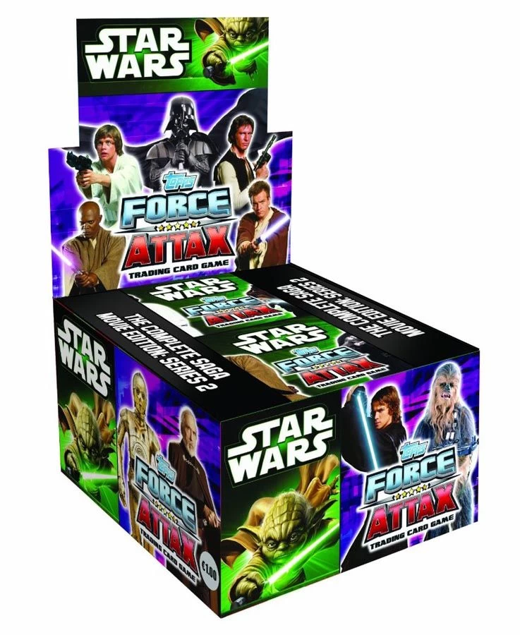 Topps Booster Display zur zweiten Serie des Star Wars Sammelkartenspiels Force Attax Movie Card Collection in Deutsch.